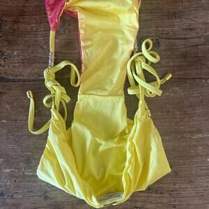 Beach Bunny y2k Rare Vintage hot pink bright yellow Beach Bunny lace bikini set