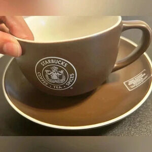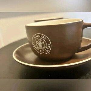 * Available is a genuine Starbucks Rare-2008 Dark Brown Cup and Saucer Set, First Starbucks Store Pike Place Market cup and saucer set from 2008