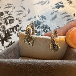 Authentic Guaranteed. David Yurman Diamond & Silver Crossover Hoop Earrings.