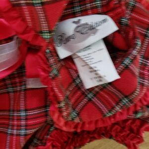 Excellent used condition, like new. Darling baby doll dress with poof sleeves and a Peter Pan collar in a red plaid. Trimmed with not just ruffles but red satin icing ruffles and red rosettes. So so cute! Perfect holiday dress. Tartan for for Christmas is timeless!