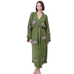 Rare-Olive HAND PAINTED EVIL EYE KAFTAN ROBE ~ MADE TO ORDER / One Size