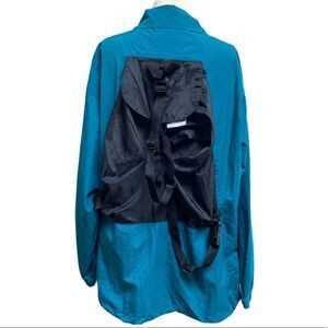 Rare One of a Kind Vintage Hiking Climbing Built in Backpack Windbreaker Teal