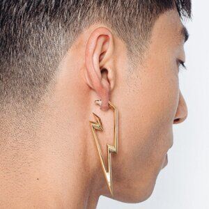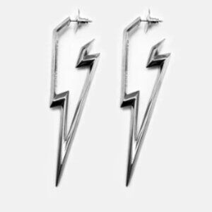 Like new and powerfully electric this thrilling pair of statement pair earrings by Rare-Romance will make you the brightest in the room. Each line of the lightning bolt is artfully extruded to perfection, surely to be your new favorite piece.