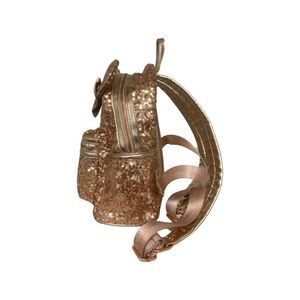 Ladies super cute rose gold sequin Embellished bow detail Minnie Mouse ears very rare backpack by Disney and Loungefly. Great preowned condition. Approximately 10" width 12" height 3" depth. Straps are adjustable. Great Gift idea!!