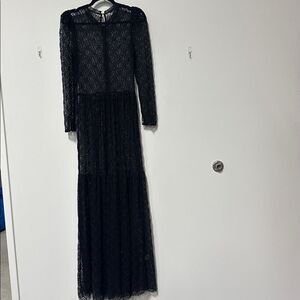Rare Sabina Musayev Black Lace Maxi Dress Sheer, Long Sleeve, Boho Formal (S/M)