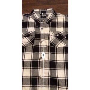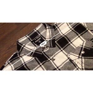This True Religion flannel shirt is a must-have for any fashion-conscious man. With its black and white plaid pattern, collared neckline, and snap closure, it is perfect for casual wear, work wear, or even travel. The shirt is made of a comfortable fabric that is a combination of 68% polyester, 27% cotton, and 5% rayon, making it durable and easy to care for with machine washable instructions.