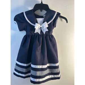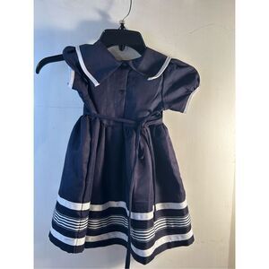 Rare edition navy white nautical dress 4t rn#18854. 100 poly. 21" long. lined.