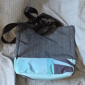 Elevate your style with this modern men's messenger bag. Featuring a sophisticated gray body with striking blue accents, it's perfect for daily adventures.