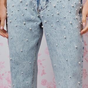 Rareraw “ Daisy ” Rareraw Pearl and Rhinestone EMBELLISHED DENIM JEANS 39