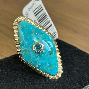 Rarities Carol Brodie Gold Plated Turquoise Kite Shaped Ring 7 NWT
