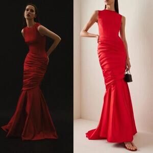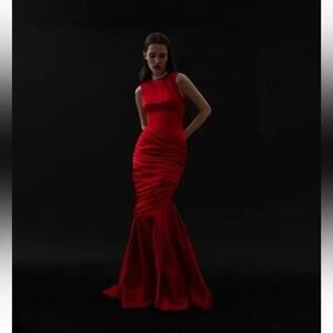 Rasario Satin Mermaid Fishtail Maxi Gown in Red Size IT40 NWT $2950