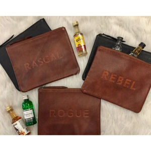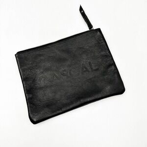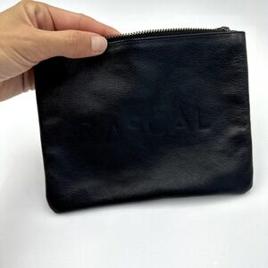 Rascal Black Leather Zip Pouch Clutch in black ft. embossed "rascal" zip top closure, camo cotton lining, great for cash, jewelry, hair accessories and more!