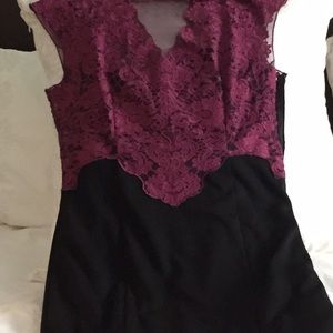 Wedding season is here!!! This beautiful number is sexy and feminine... Top is raspberry with a beautiful sheer back. The bottom is slimming in black. Great dress!