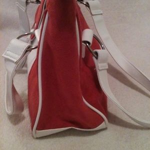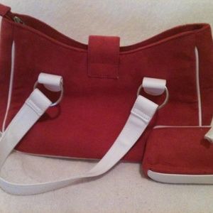-- RASPBERRY PINK SUEDE AND WHITE FAUX LEATHER HANDBAG WITH MATCHING COIN PURSE