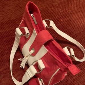 Raspberry Pink Suede and White Leather Handbag & Coin Purse