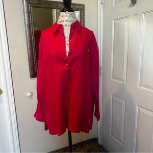 Chico’s Raspberry Red Linen Button Down Tunic