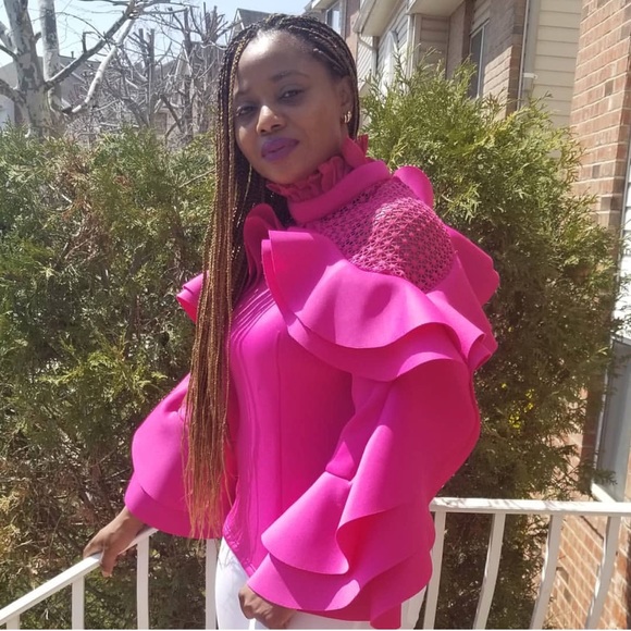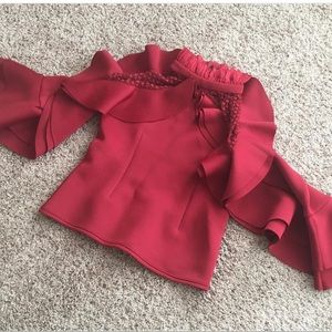 Raspberry Ruffle Sheer Sleeves Top