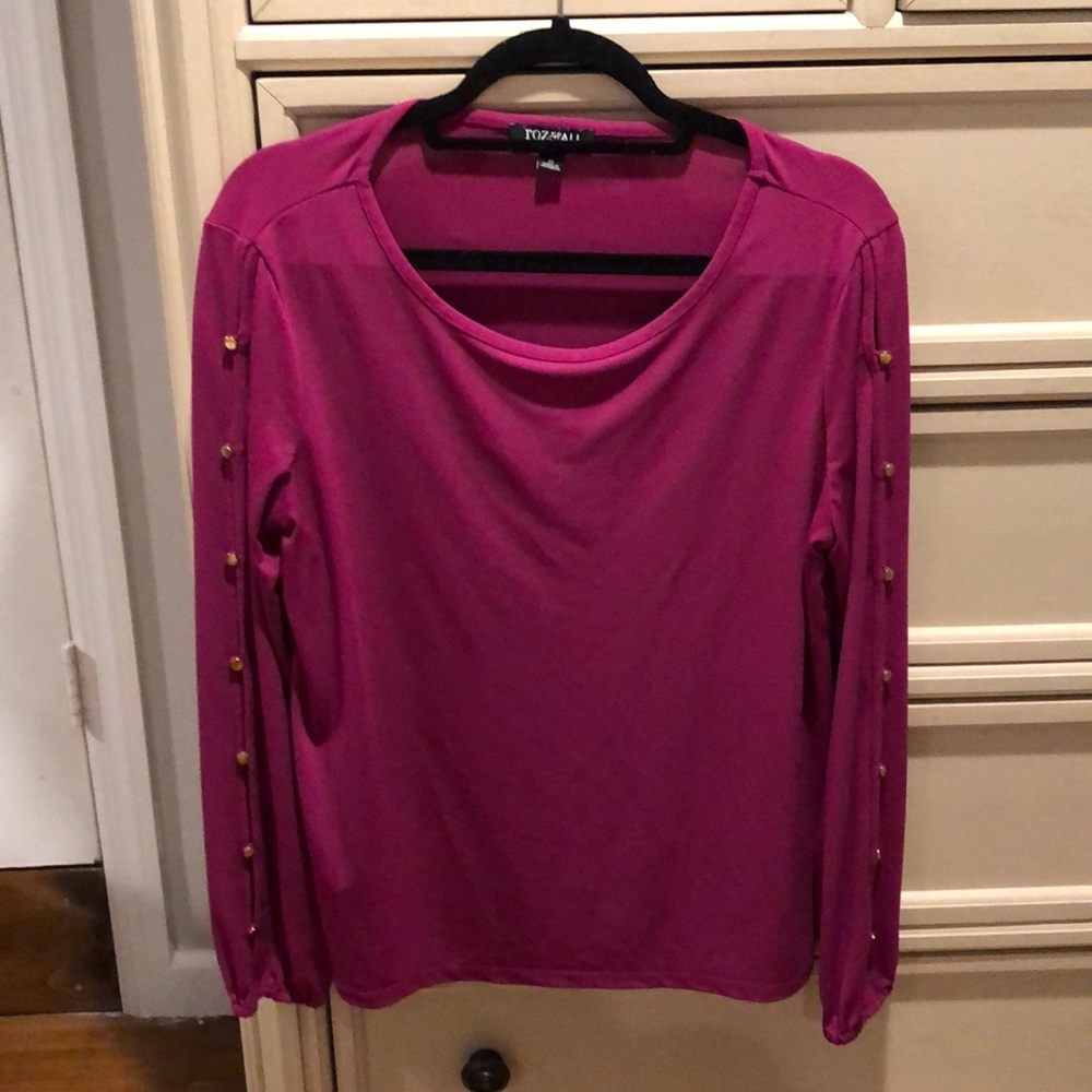 Beautiful blouse with brass button detail down sleeve and banded cuffs.