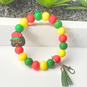 Rasta Beaded Bracelet Keychain w/ Afro Lady Charm – Handmade Jewelry
