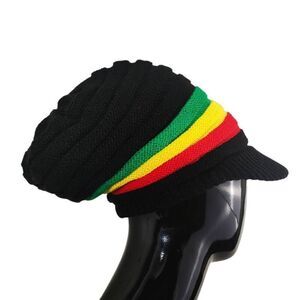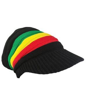 Elevate your wardrobe with this stylish Rasta Brim Knit Beanie Hat. Made with knit stretch fabric, it fits all head sizes and provides a comfortable fit. The beanie features a multicolor design that adds a pop of color to any outfit. It is perfect for men and women. The knit fabric type ensures durability and warmth, making it an ideal choice for your favorite vacation spot, outdoor activities or everyday wear. The beanie's style is perfect for a casual, laid-back look, and it can be worn with various clothing and accessories.