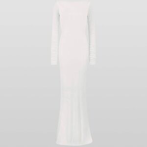 A high-grade double-layered jersey is masterfully draped to reveal and conceal. Rodeo may appear demure at first glance but with an elegant spin, she reveals a daringly cut low back.