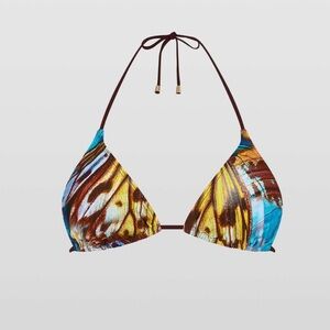Bold bikini with striking blue and brown pattern. Ideal for beach days.