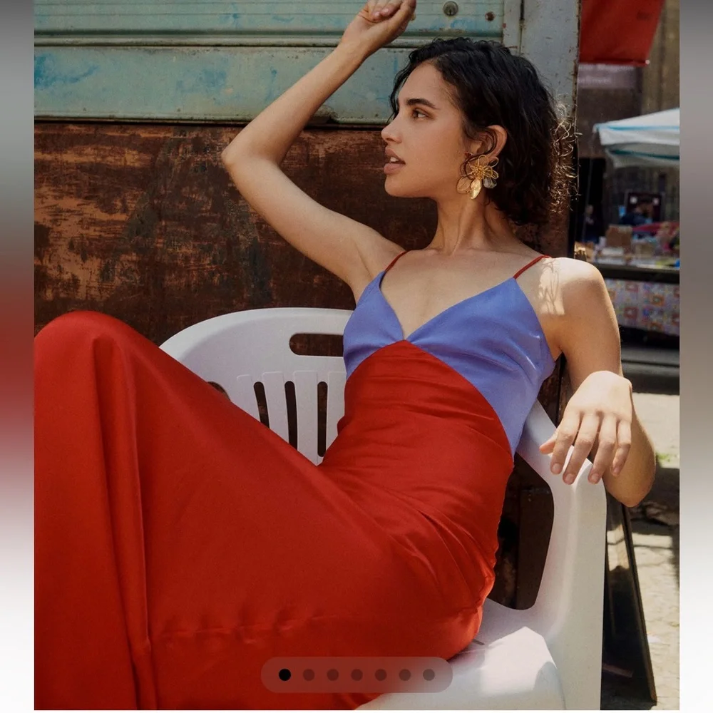 The spirit of summer, Rosso is a two-tone dream of a dress. Cut in our signature slip silhouette from mid-weight crepe de chine and contrasting silk for a perfectly effortless drape.
