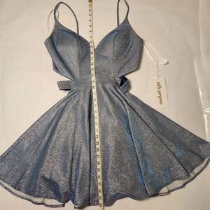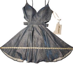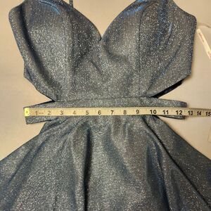 Rated PG by Prom Girl Sparkly Fit & Flare Mini Dress in Dusty Blue Sz 8 NWT