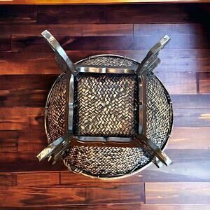Rattan & Bamboo Basket Planter-Vintage Asian Hand-Woven-Wood Stand-Boho-Storage