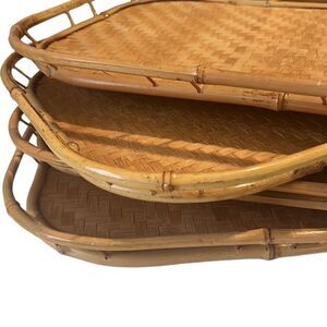 Rattan Bamboo Woven Vintage Trays Set of 4 18.5 x 13 Inches