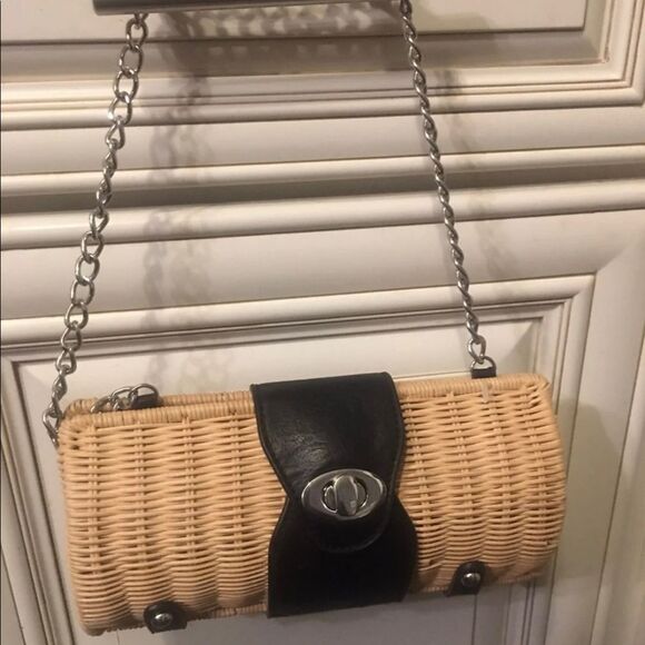 Rattan Leather with Natural Straw Rattan Basket Clutch