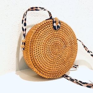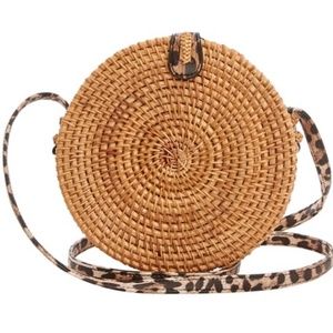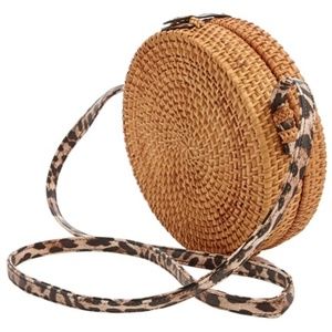 Rattan Leopard Strap Canteen Crossbody Bag/NWT