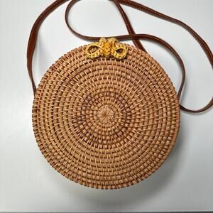 Rattan Round Canteen Crossbody Boho Handbag Purse