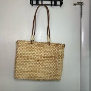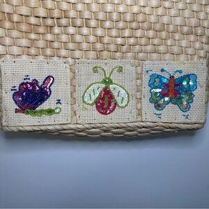 Rattan Straw Woven Shoulder Bag with Embroidery.