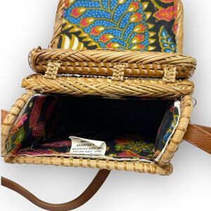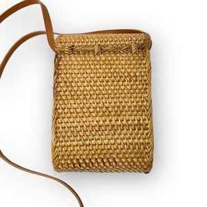 Rattan Wicker Woven Lined Basket Shoulder Bag Phone Crossbody Purse Rectangle