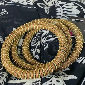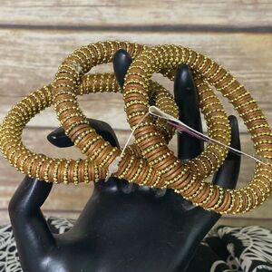 Wear them in singles or all together, NWT, Rattan intertwined with tiny gold beads.