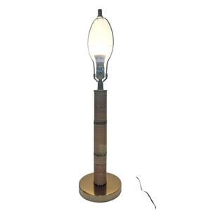 Rattan Wrapped MCM Table Lamp Vintage Brass Trim Tiki BOHO Mid Century 28". Preowned. Some wear/aging on brass base. Please see photos. Comes from smoke free home.