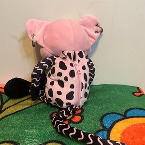 Rattiana backpack by Dolls Kill. Adorable pink and black plush toy with unique design. Features a chain strap. Perfect for collectors or as a gift.