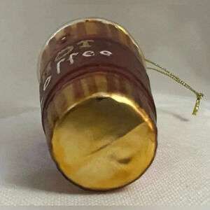 Rauch Industries | blown glass Hot Coffee travel mug Christmas tree ornament.