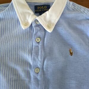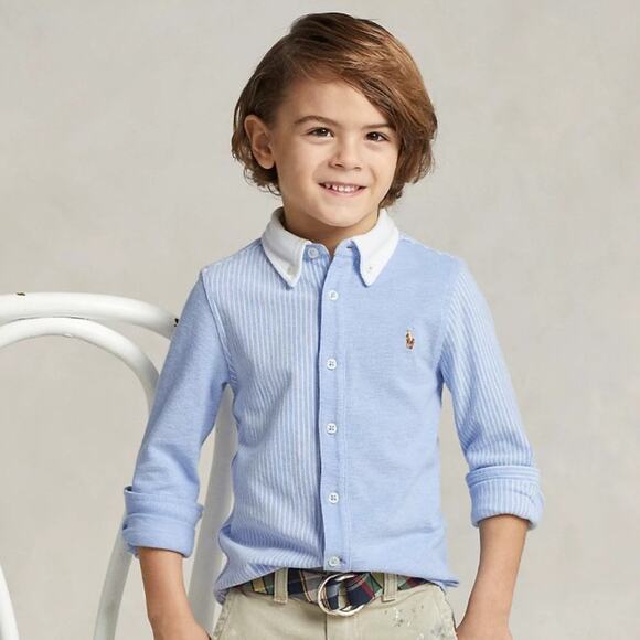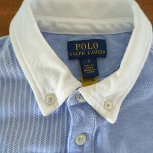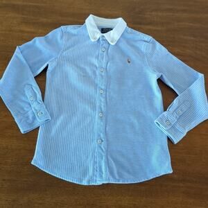 Raulph Lauren Boys Knit Oxford Fun Shirt in Harbor Island Blue white size 7 EUC