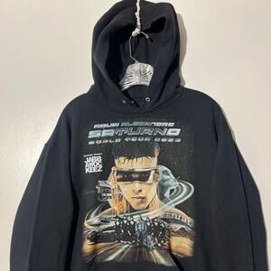 Rauw Alejandro Saturno Tour 2023 Black Graphic Pullover Hoodie Size Medium
