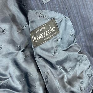 Ravazzolo 44R Hand Tailored Made in Italy Super 140’s Wool Navy Pinstripe Suit