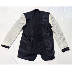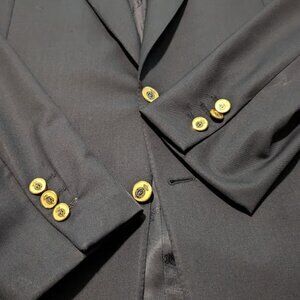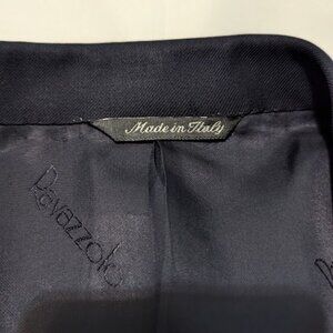 Ravazzolo Navy blazer in excellent used condition. 42 Long, drop 6, ventless. 2 button single breasted closure with metal buttons on the chest and wrists. 100% virgin wool and Made in Italy.