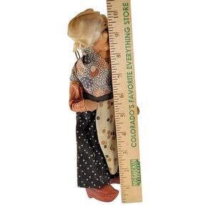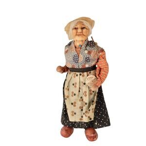 Original Ravca Normandie 10" vintage cloth doll handmade in France by B. Ravca. Tagged and dressed in traditional attire with detailed facial stitching and painted composite feet. A collectible folk figure from a renowned French dollmaker.