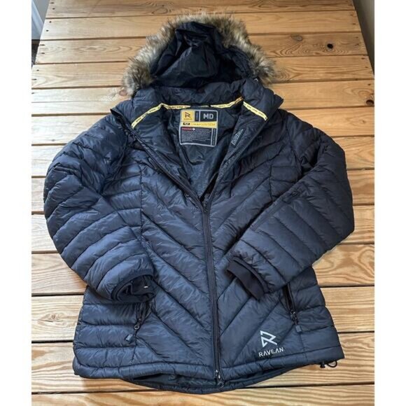 Ravean Women’s Black Full Zip Faux Fur Hood Heated Puffer Jacket Coat Size Medium