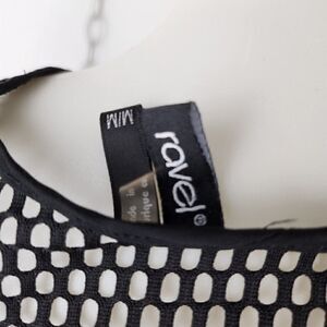 Ravel 80s Style Boxy Mesh Black Open Knit Sheer Top Womens M