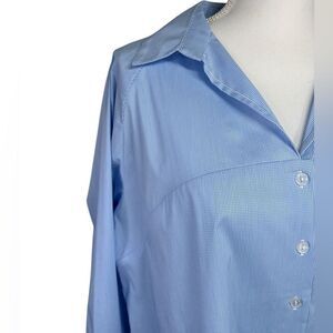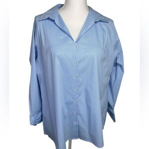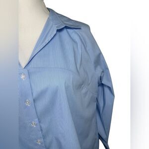 Ravel Blue Stripe Bow Button Down Blouse 3/4 Sleeve Size Medium