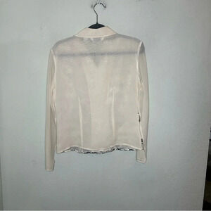 tags: Ravel silk zip-up blouse, size small silk top, women's sheer silk blouse, Ravel sheer long sleeve blouse, vintage Ravel silk shirt, Ravel ruffle front blouse, elegant silk zip-front top, chic sheer silk shirt, Ravel vintage women's blouse, stylish silk long sleeve top