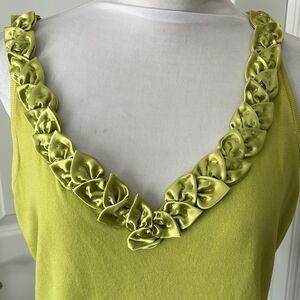 Ravel V Neck Satin Beaded Floral Trim Citron Color SZ XL