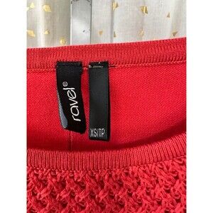 Ravel Women's Mixed Knit Crochet Cross-Stitched Front Splits Sweater XS